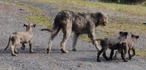 Die Wolfhund-Welpen wachsen bei mir frei im ca. 2000 m² großen Garten und mit direktem Rudelanschluss auf, das heißt die erwachsenen Tiere haben, sobald die Mutter dies zulässt, direkten Kontakt zu den Welpen.